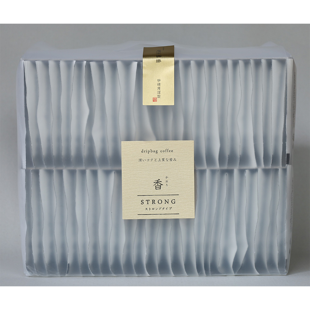 珈道庵 > 家庭用珈琲 > ドリップバッグ > 【香50ストロングタイプ】 ■【香50ストロングタイプ】 【香50ストロングタイプ】 ロングセラーのブレンド「香」。 ほろ苦く、甘みをともなうコクが人気です。 【内容量】8g×50個