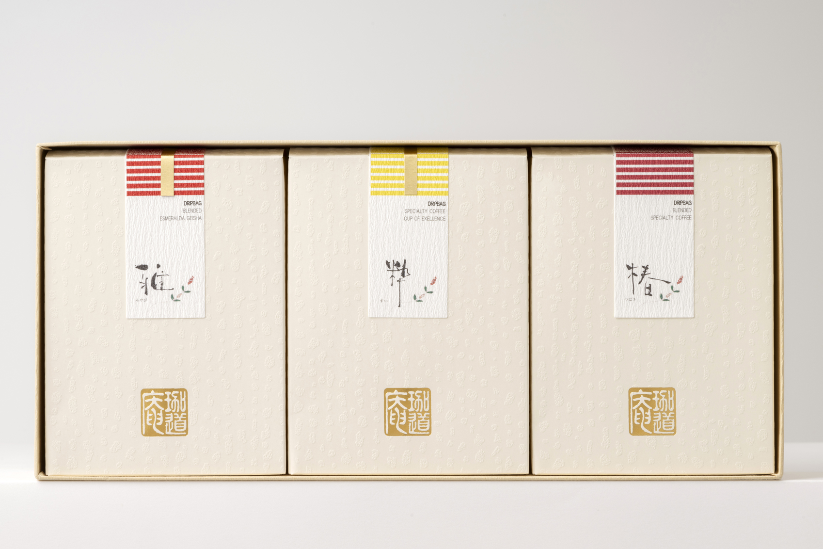 珈道庵 > 価格帯から選ぶ > 3,000~4,999円 > 高級ドリップバッグ [集15] ■高級ドリップバッグ [集15] 高級ドリップバッグ [集15] 【内容量】高級ドリップバッグ珈琲15個(パナマ・エスメラルダ農園産ゲイシャのブレンド「雅」8g×5個、カップ・オブ・エクセレンス「粋」8g×1個×5種、ブレンド「椿」8g×5個)